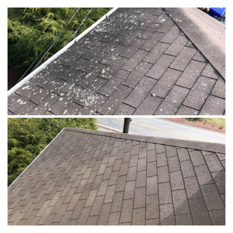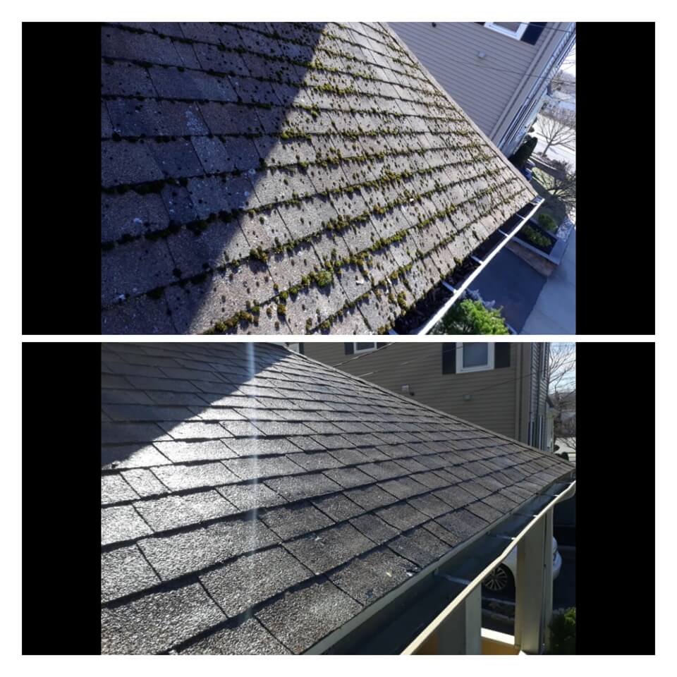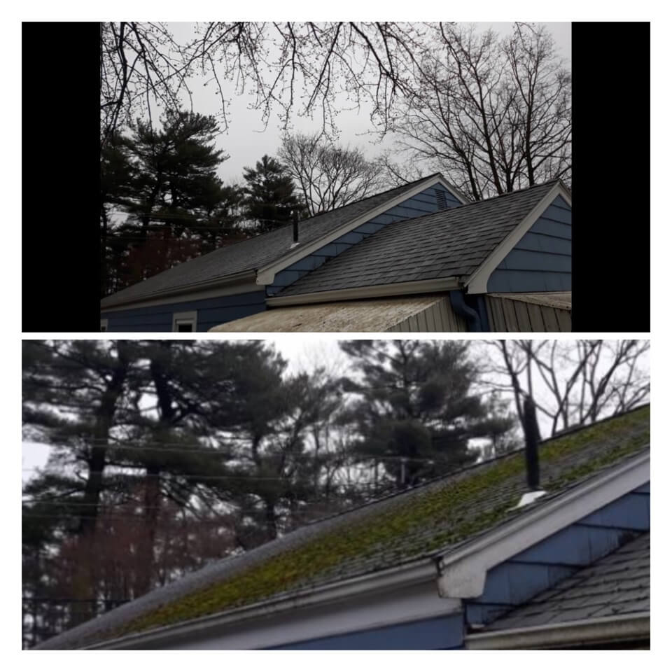 HiCleaners is the most experienced company in Pepperell, MA that deals with roof washing and roof soft washing. All of our employees are trained to recognize precise solution mixing ratios to provide you with the safest and most effective soft washing service. Roofs are a commonly neglected part of a house due to the fact that most people don’t have ladders to access it, so it is very easy to just leave it alone and forget about problems that may start to arise. Just like many home owners, discoloration and small bits of moss on a roof can be overlooked because of the misconception that it is just aesthetic. However, it isn’t just aesthetic, the moss slowly lifts the granules off the shingles which in turn shorten the life of the shingle. The moss also spreads, just like any bacteria if it is left alone for too long, it can quickly become a problem that spirals out of control. Call HiCleaners for a free quote, we only use the most advanced eco-friendly solutions and equipment to make sure the job is done right, for the safety of the employees, your plants, grass, pets, and children.
