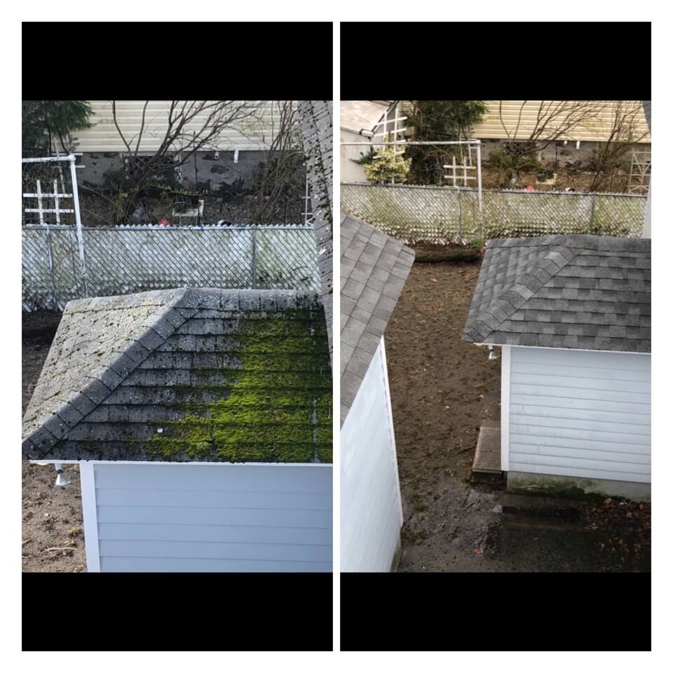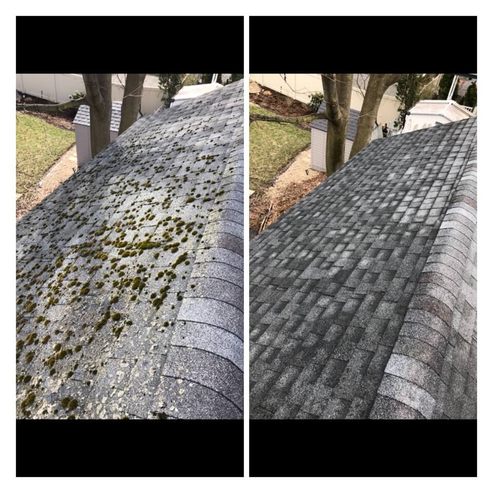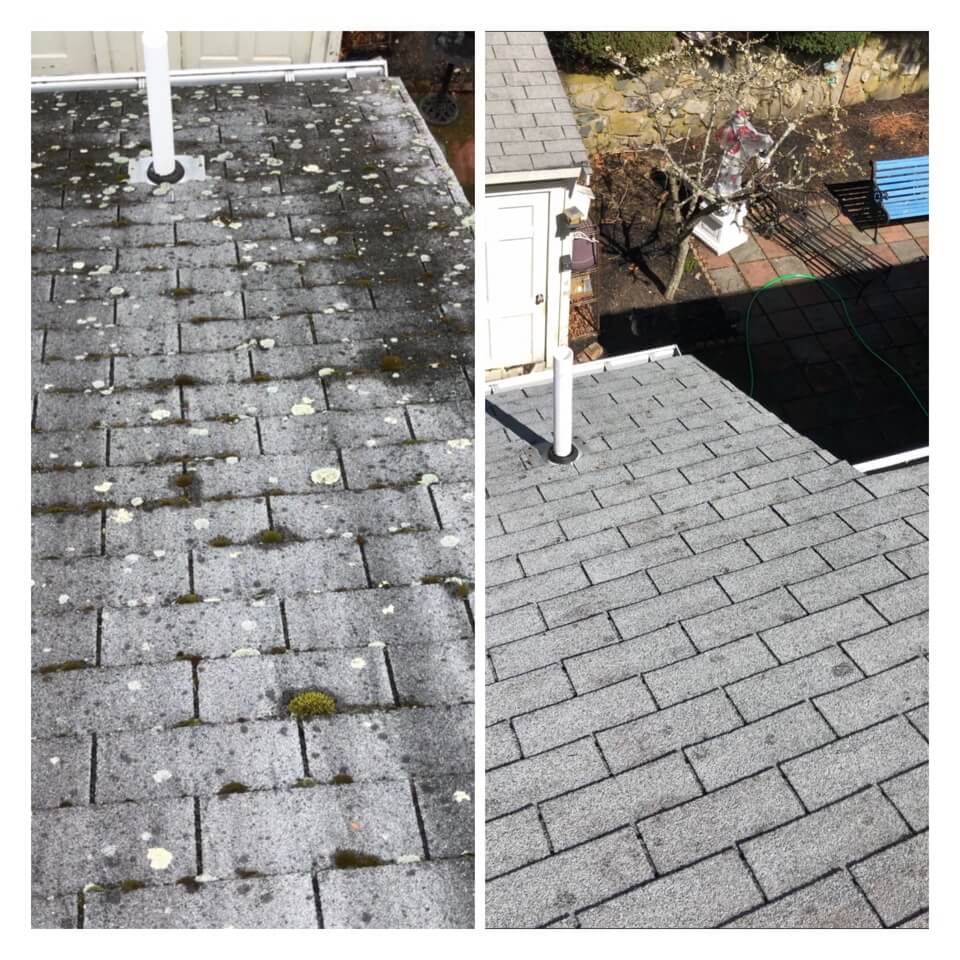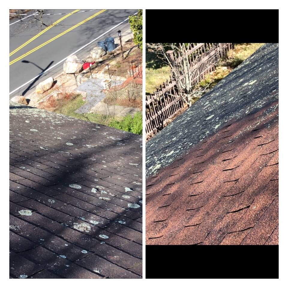 HiCleaners is the most experienced company in Pepperell, MA that deals with roof washing and roof soft washing. All of our employees are trained to recognize precise solution mixing ratios to provide you with the safest and most effective soft washing service. Roofs are a commonly neglected part of a house due to the fact that most people don’t have ladders to access it, so it is very easy to just leave it alone and forget about problems that may start to arise. Just like many home owners, discoloration and small bits of moss on a roof can be overlooked because of the misconception that it is just aesthetic. However, it isn’t just aesthetic, the moss slowly lifts the granules off the shingles which in turn shorten the life of the shingle. The moss also spreads, just like any bacteria if it is left alone for too long, it can quickly become a problem that spirals out of control. Call HiCleaners for a free quote, we only use the most advanced eco-friendly solutions and equipment to make sure the job is done right, for the safety of the employees, your plants, grass, pets, and children.